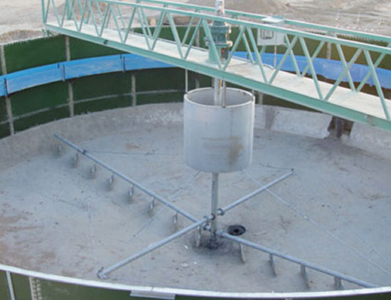 原水经中心配水简布水后呈辐射流向池子周边溢水槽,随蓿流速的降低。水体中的悬浮物被分离而沉降于池底。通过减速驱动和悬挂式组件的传动,由刮板将污泥刮集到中心集泥槽,依靠静水压力或泵排出池外。